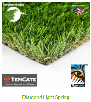 This is a medium pile turf which is similar in pile height as Everglade Spring Light (above). However, since it has a permeable backing like the pet turf, it can double as pet turf for small dogs and long as it gets the proper infills.